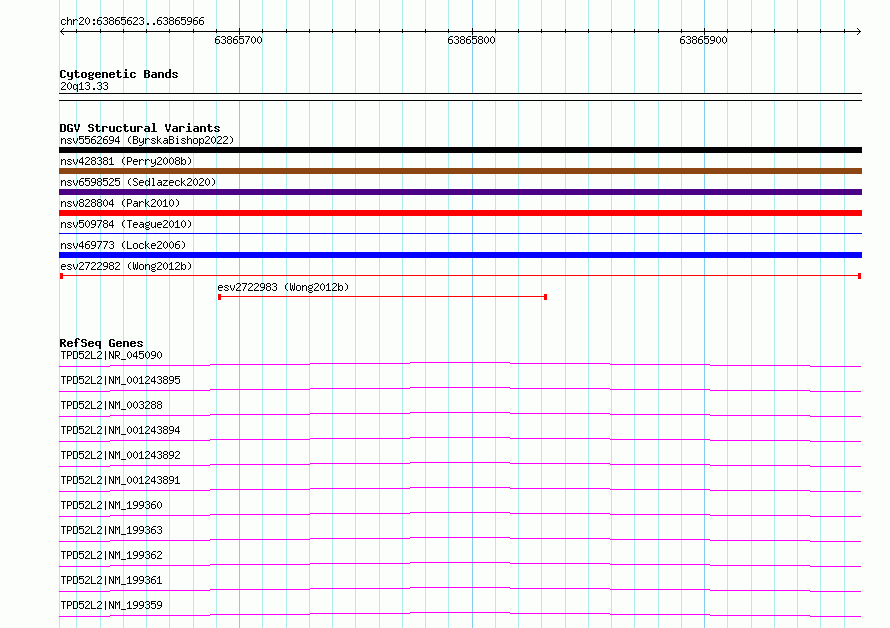 Variant DetailsVariant: esv2722982| Internal ID | 10306618 | | Landmark | | | Location Information | | | Cytoband | 20q13.33 | | Allele length | | Assembly | Allele length | | hg38 | 344 | | hg19 | 344 |