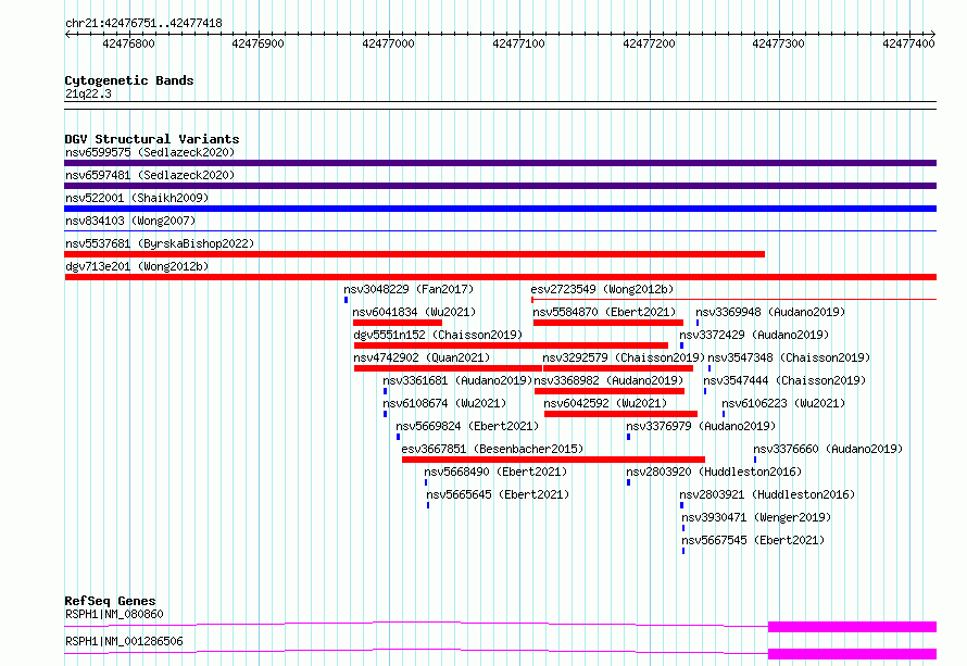 Variant DetailsVariant: esv2723547| Internal ID | 10307183 | | Landmark | | | Location Information | | | Cytoband | 21q22.3 | | Allele length | | Assembly | Allele length | | hg38 | 668 | | hg19 | 668 |