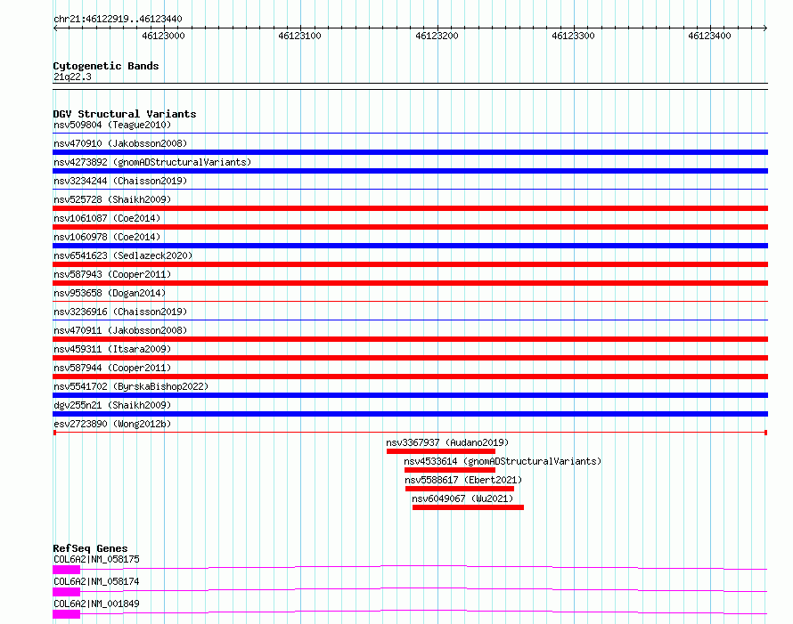 Variant DetailsVariant: esv2723890| Internal ID | 10307526 | | Landmark | | | Location Information | | | Cytoband | 21q22.3 | | Allele length | | Assembly | Allele length | | hg38 | 522 | | hg19 | 522 |