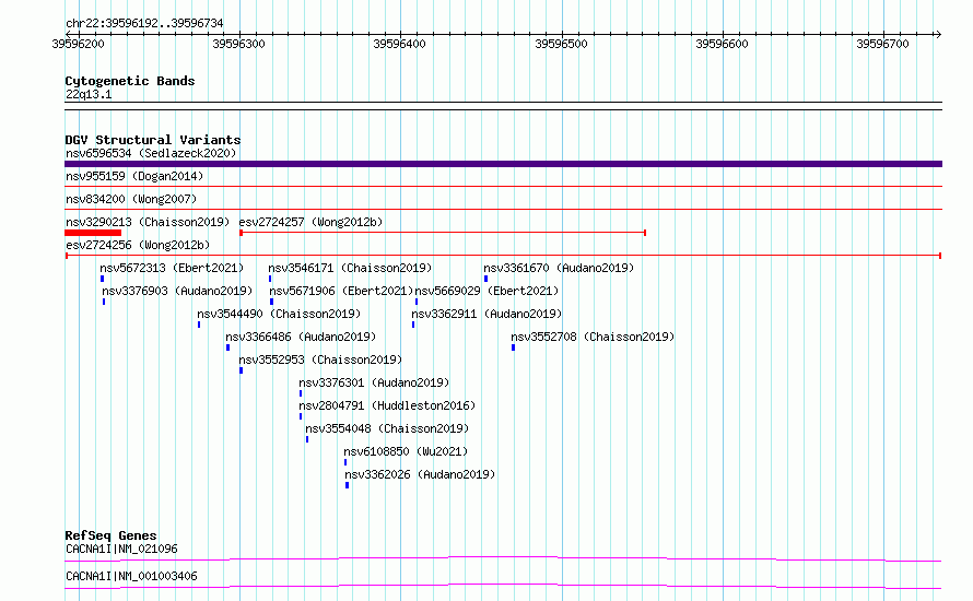 Variant DetailsVariant: esv2724256| Internal ID | 10307892 | | Landmark | | | Location Information | | | Cytoband | 22q13.1 | | Allele length | | Assembly | Allele length | | hg38 | 543 | | hg19 | 543 |