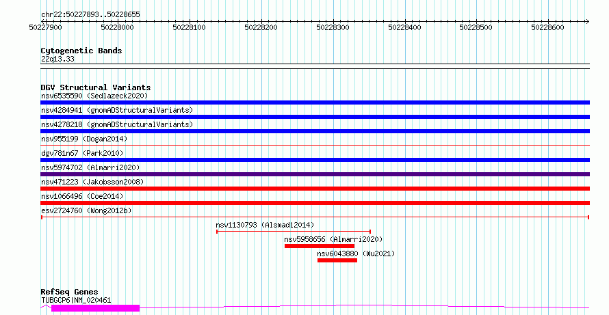 Variant DetailsVariant: esv2724760 | Internal ID | 10308396 | | Landmark | | | Location Information | | | Cytoband | 22q13.33 | | Allele length | | Assembly | Allele length | | hg38 | 763 | | hg19 | 763 |