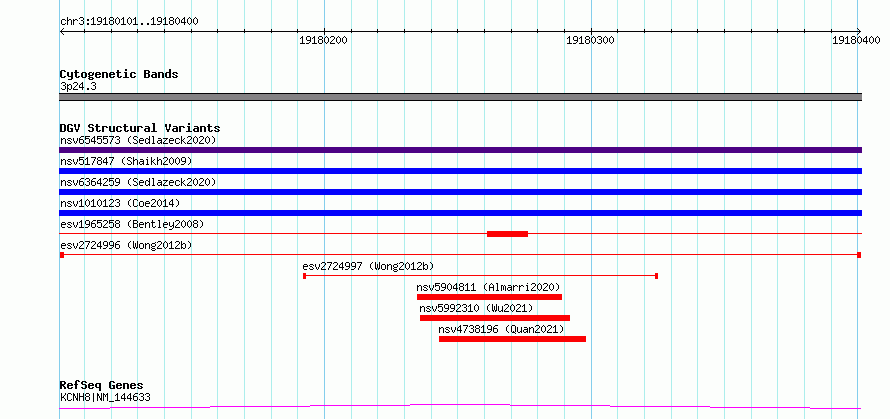Variant DetailsVariant: esv2724996| Internal ID | 10308632 | | Landmark | | | Location Information | | | Cytoband | 3p24.3 | | Allele length | | Assembly | Allele length | | hg38 | 300 | | hg19 | 300 |