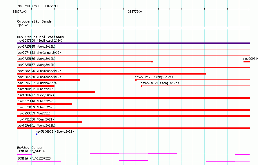 Variant DetailsVariant: esv2725168| Internal ID | 10308804 | | Landmark | | | Location Information | | | Cytoband | 3p22.2 | | Allele length | | Assembly | Allele length | | hg38 | 201 | | hg19 | 201 |