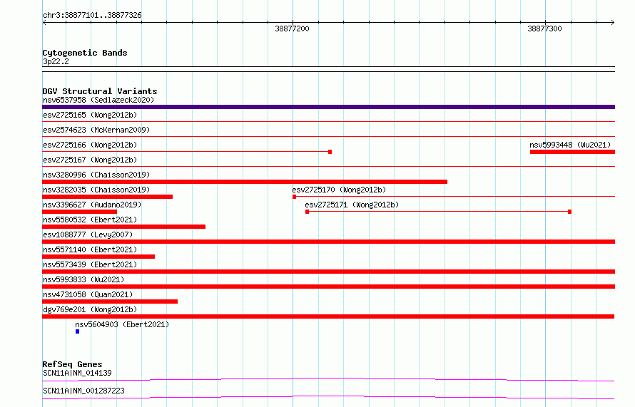 Variant DetailsVariant: esv2725169| Internal ID | 10308805 | | Landmark | | | Location Information | | | Cytoband | 3p22.2 | | Allele length | | Assembly | Allele length | | hg38 | 226 | | hg19 | 226 |