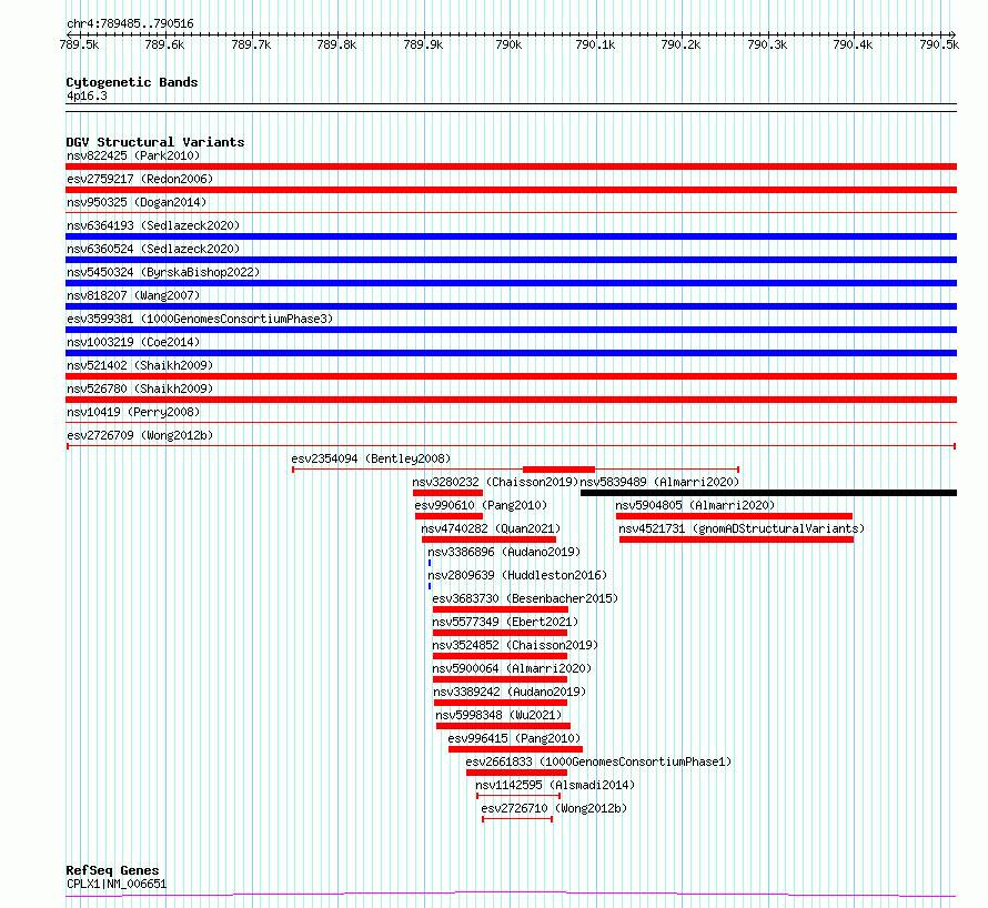 Variant DetailsVariant: esv2726709| Internal ID | 10310345 | | Landmark | | | Location Information | | | Cytoband | 4p16.3 | | Allele length | | Assembly | Allele length | | hg38 | 1032 | | hg19 | 1032 |