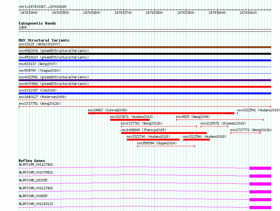 Variant DetailsVariant: esv2727751| Internal ID | 9962063 | | Landmark | | | Location Information | | | Cytoband | 1q44 | | Allele length | | Assembly | Allele length | | hg38 | 803 | | hg19 | 803 |