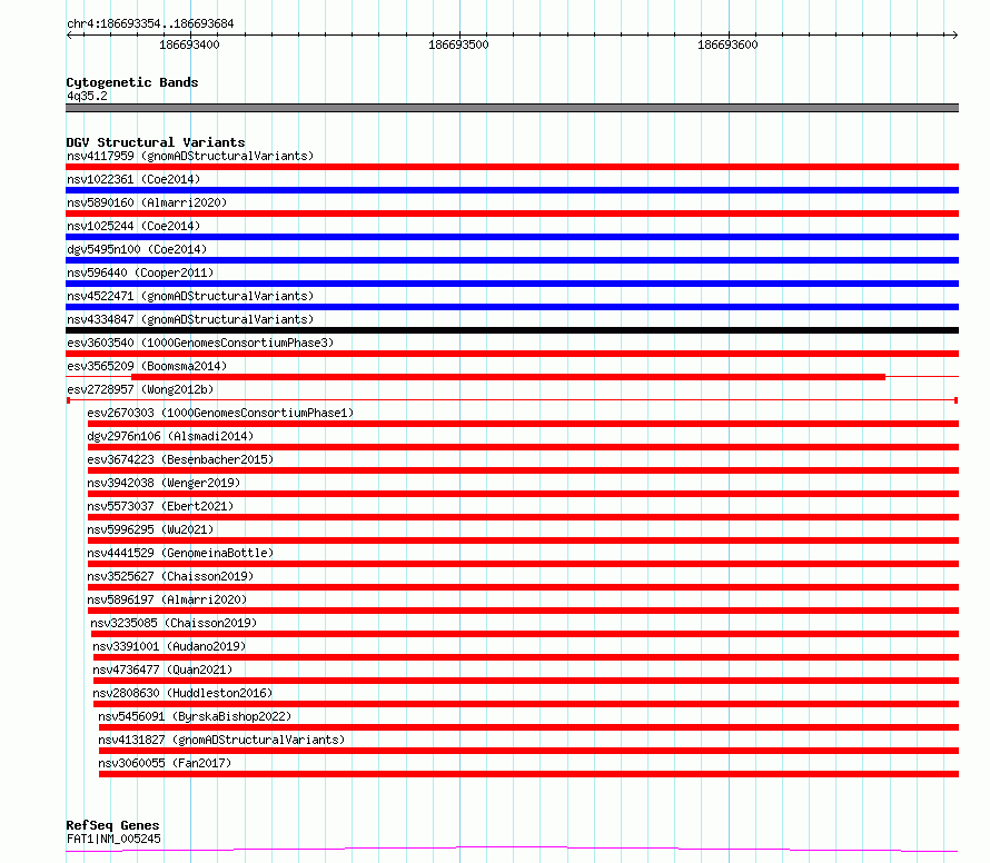 Variant DetailsVariant: esv2728957| Internal ID | 10312593 | | Landmark | | | Location Information | | | Cytoband | 4q35.2 | | Allele length | | Assembly | Allele length | | hg38 | 331 | | hg19 | 331 |