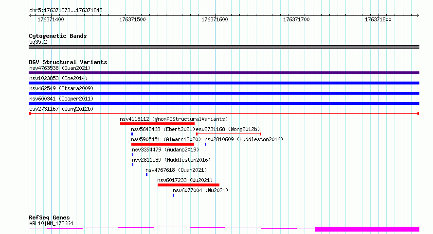 Variant DetailsVariant: esv2731167| Internal ID | 10314803 | | Landmark | | | Location Information | | | Cytoband | 5q35.2 | | Allele length | | Assembly | Allele length | | hg38 | 476 | | hg19 | 476 |