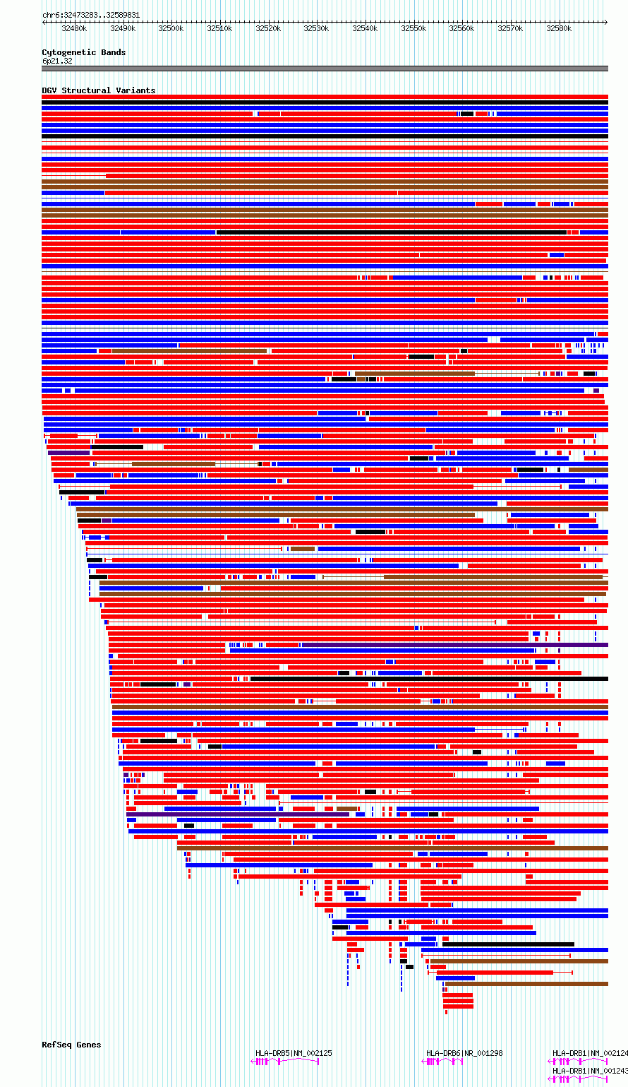 Variant DetailsVariant: esv2731844 | Internal ID | 10315480 | | Landmark | | | Location Information | | | Cytoband | 6p21.32 | | Allele length | | Assembly | Allele length | | hg38 | 116549 | | hg19 | 116549 |