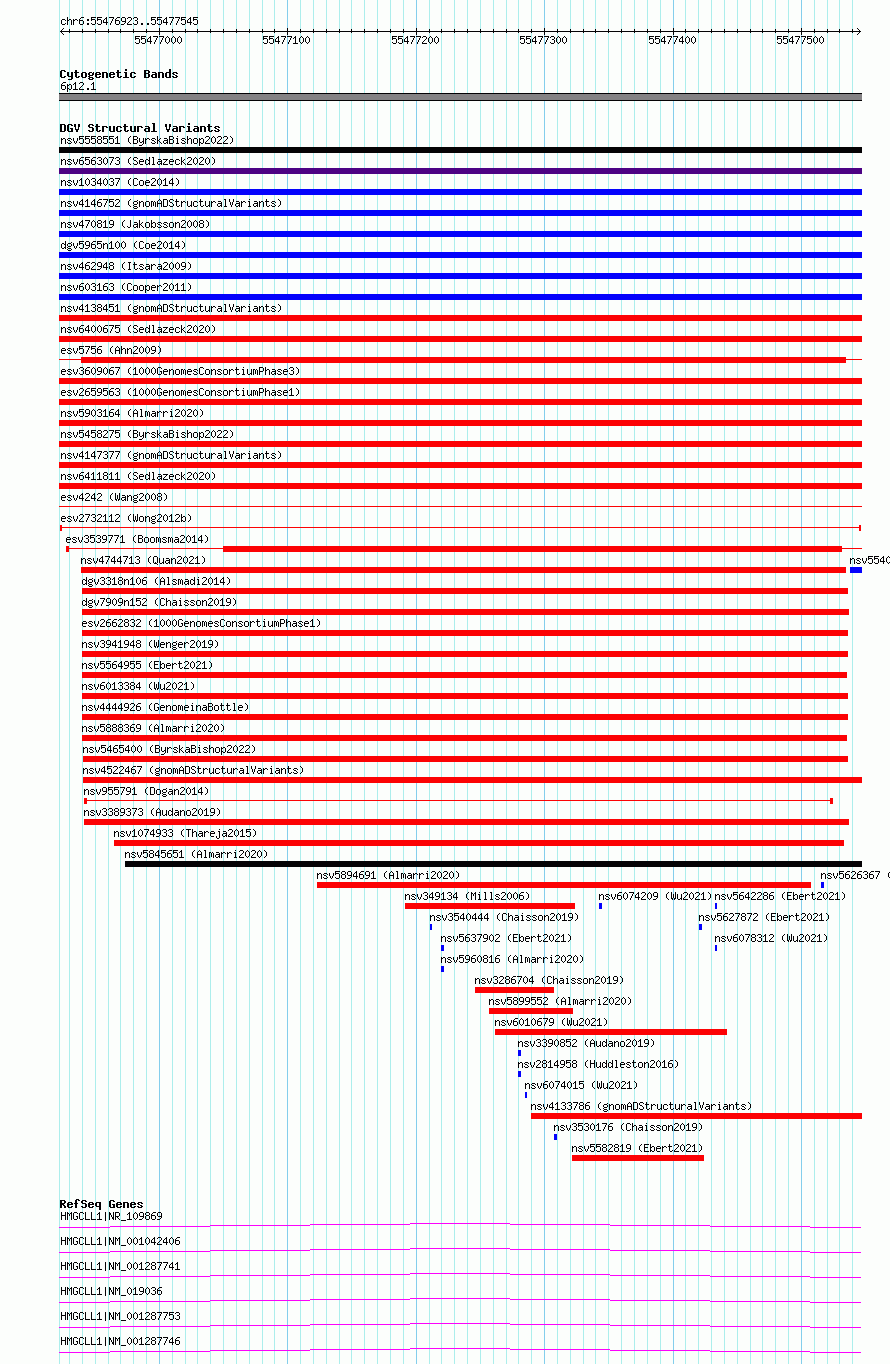 Variant DetailsVariant: esv2732112 | Internal ID | 10315748 | | Landmark | | | Location Information | | | Cytoband | 6p12.1 | | Allele length | | Assembly | Allele length | | hg38 | 623 | | hg19 | 623 |