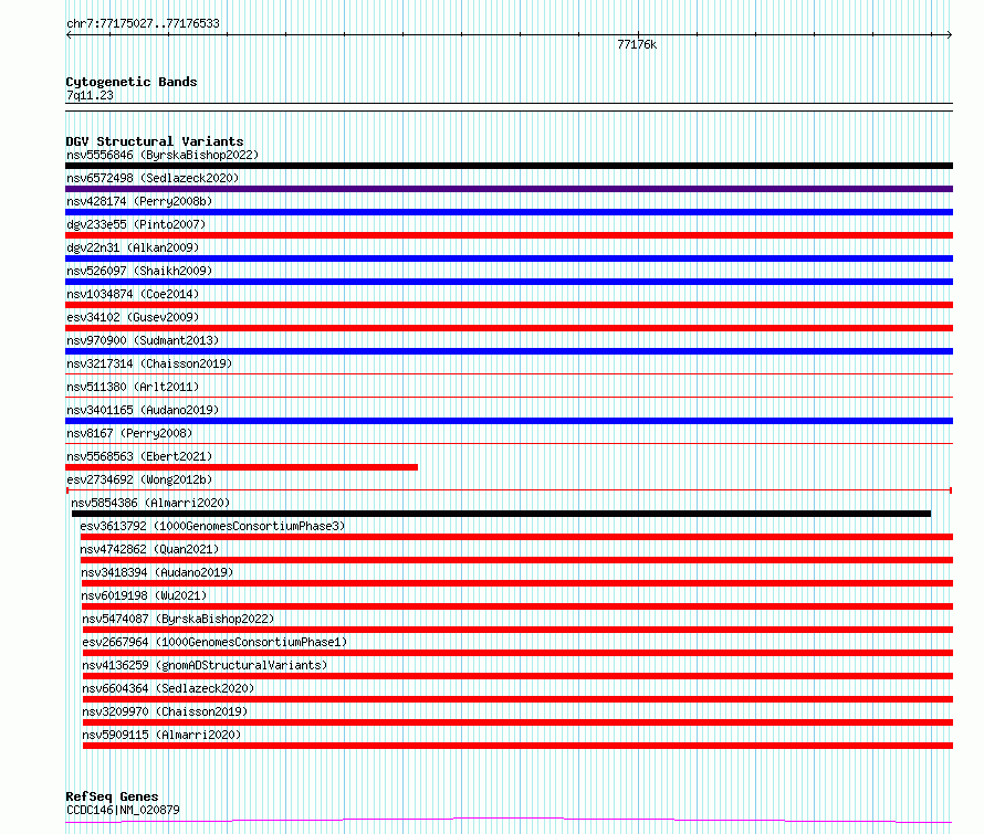 Variant DetailsVariant: esv2734692 | Internal ID | 10318328 | | Landmark | | | Location Information | | | Cytoband | 7q11.23 | | Allele length | | Assembly | Allele length | | hg38 | 1507 | | hg19 | 1507 |