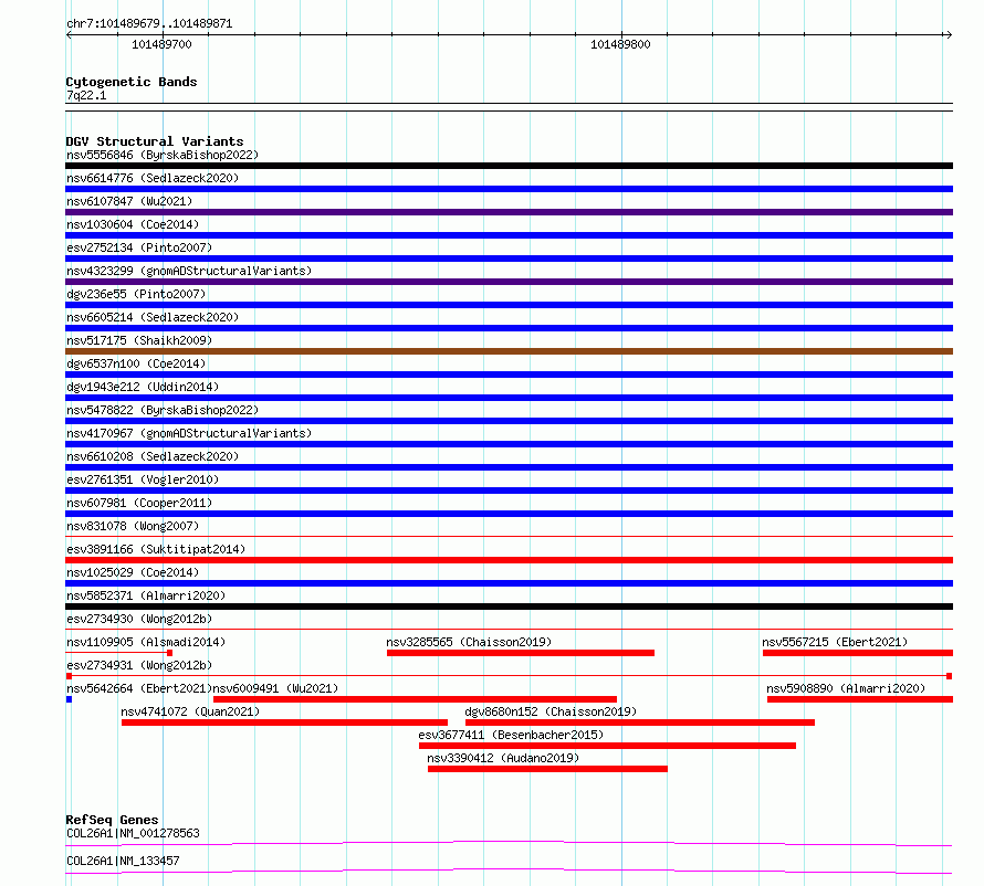 Variant DetailsVariant: esv2734931| Internal ID | 10318567 | | Landmark | | | Location Information | | | Cytoband | 7q22.1 | | Allele length | | Assembly | Allele length | | hg38 | 193 | | hg19 | 193 |