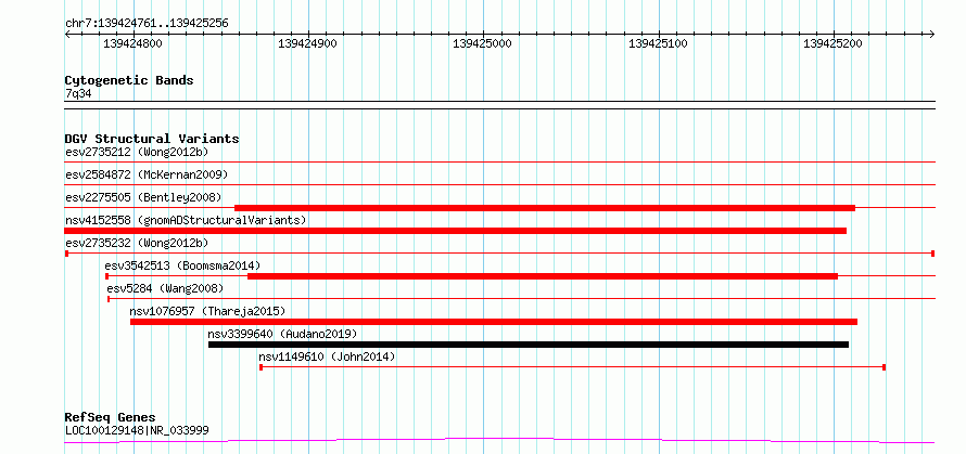 Variant DetailsVariant: esv2735232| Internal ID | 9969562 | | Landmark | | | Location Information | | | Cytoband | 7q34 | | Allele length | | Assembly | Allele length | | hg38 | 496 | | hg19 | 496 |