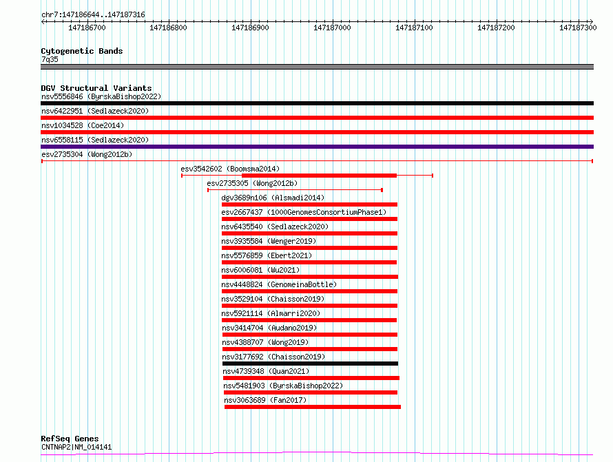 Variant DetailsVariant: esv2735304| Internal ID | 10318940 | | Landmark | | | Location Information | | | Cytoband | 7q35 | | Allele length | | Assembly | Allele length | | hg38 | 673 | | hg19 | 673 |