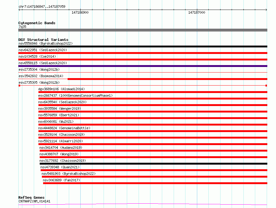 Variant DetailsVariant: esv2735305| Internal ID | 10318941 | | Landmark | | | Location Information | | | Cytoband | 7q35 | | Allele length | | Assembly | Allele length | | hg38 | 213 | | hg19 | 213 |