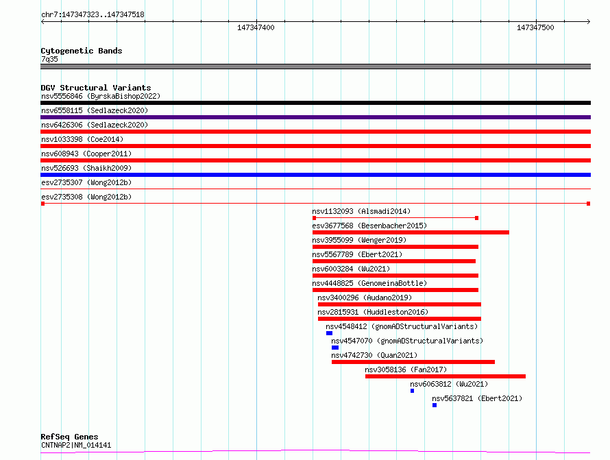 Variant DetailsVariant: esv2735308| Internal ID | 10318944 | | Landmark | | | Location Information | | | Cytoband | 7q35 | | Allele length | | Assembly | Allele length | | hg38 | 196 | | hg19 | 196 |