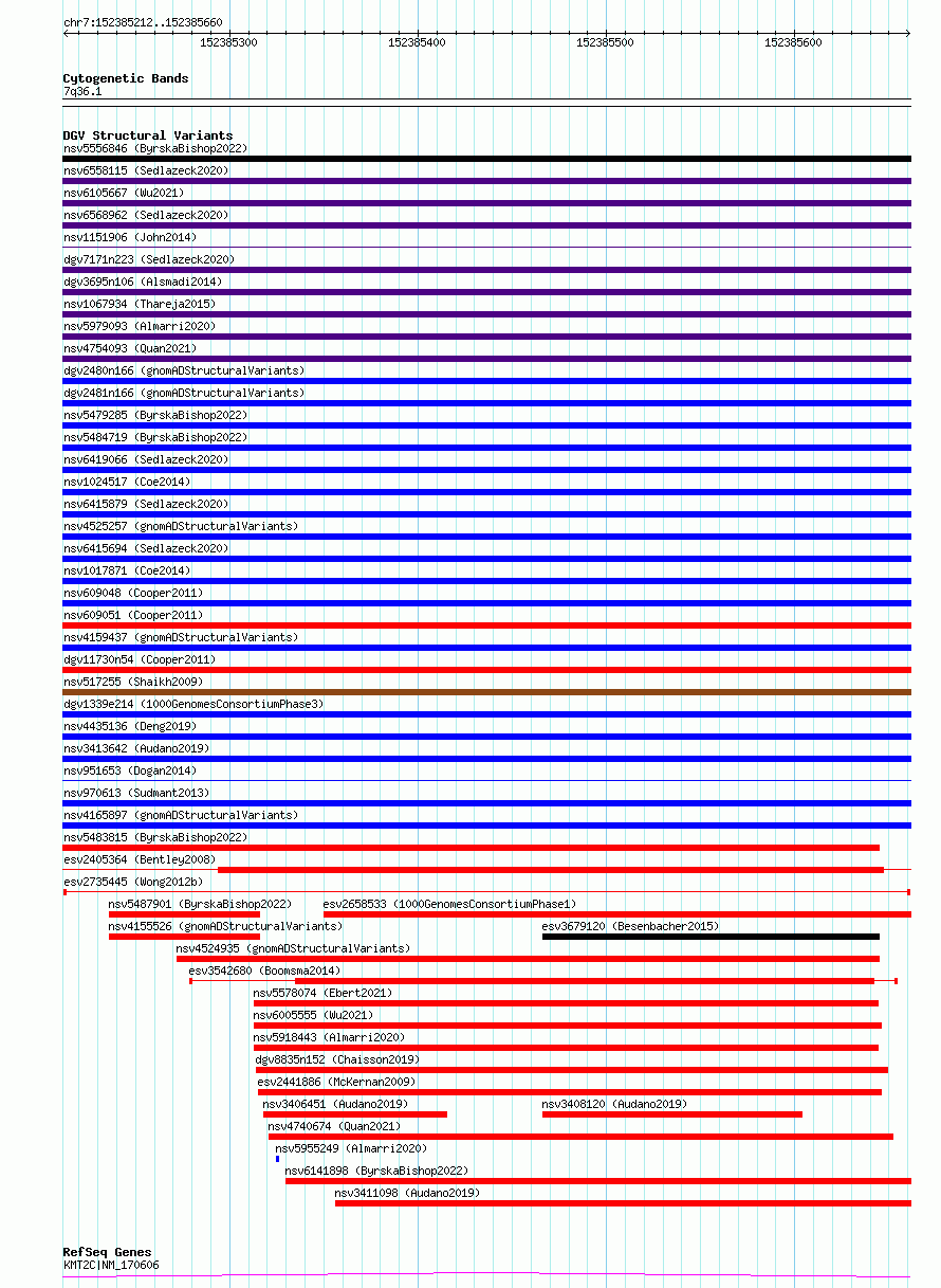 Variant DetailsVariant: esv2735445| Internal ID | 10319081 | | Landmark | | | Location Information | | | Cytoband | 7q36.1 | | Allele length | | Assembly | Allele length | | hg38 | 449 | | hg19 | 449 |