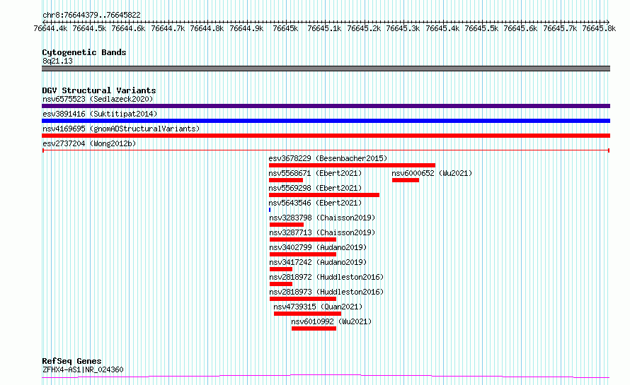 | | Variant Type | CNV deletion | | Copy Number | | | Allele State | | | Allele Origin | | | Probe Count | | | Validation Flag | | | Merged Status | M | | Merged Variants | | | Supporting Variants | essv6791220, essv6727752, essv6691082, essv6763010, essv6952604, essv6944220, essv6814915, essv6897210, essv6893721, essv6737450, essv6881895, essv6733832, essv6873261, essv6755064, essv6931170, essv6746400, essv6976000, essv6879071, essv6911988, essv6939699, essv6887534, essv6904819, essv6771469, essv6884696, essv6765425, essv6970118, essv6778856, essv6935433, essv6716181, essv6705673, essv6958178, essv6775169, essv6740544, essv6672138, essv6698351, essv6861637, essv6760546, essv6856234, essv6923689, essv6708993, essv6830763, essv6845490, essv6712466, essv6752118, essv6900186, essv6801088, essv6766632, essv6683454, essv6850207, essv6919547, essv6823032, essv6841874, essv6782910, essv6749237, essv6694886, essv6966572, essv6805929, essv6838050, essv6894110, essv6830686, essv6870295, essv6757851, essv6904361, essv6731519, essv6795379, essv6948448, essv6768045, essv6811793, essv6964782, essv6707610, essv6915634, essv6818972, essv6787118, essv6681034, essv6934041, essv6927404, essv6834374, essv6685042, essv6723908, essv6803059, essv6720097 | | Samples | SSM100, SSM059, SSM036, SSM008, SSM083, SSM071, SSM027, SSM024, SSM045, SSM046, SSM064, SSM079, SSM065, SSM087, SSM038, SSM013, SSM009, SSM073, SSM093, SSM050, SSM074, SSM042, SSM088, SSM002, SSM041, SSM057, SSM023, SSM058, SSM028, SSM084, SSM090, SSM021, SSM047, SSM018, SSM069, SSM061, SSM029, SSM096, SSM062, SSM026, SSM017, SSM019, SSM094, SSM003, SSM031, SSM067, SSM044, SSM001, SSM086, SSM033, SSM066, SSM006, SSM085, SSM068, SSM081, SSM040, SSM082, SSM020, SSM007, SSM015, SSM078, SSM016, SSM005, SSM037, SSM077, SSM076, SSM022, SSM010, SSM091, SSM055, SSM070, SSM095, SSM025, SSM004, SSM099, SSM043, SSM052, SSM098, SSM056, SSM063, SSM012 | | Known Genes | ZFHX4-AS1 | | Method | Sequencing | | Analysis | Breakdancer:4 times standard deviation,VariationHunter:4 times standard deviation and at least 3 supportting reads | | Platform | Illumina HiSeq 2000 | | Comments | | | Reference | Wong_et_al_2012b | | Pubmed ID | 23290073 | | Accession Number(s) | esv2737204