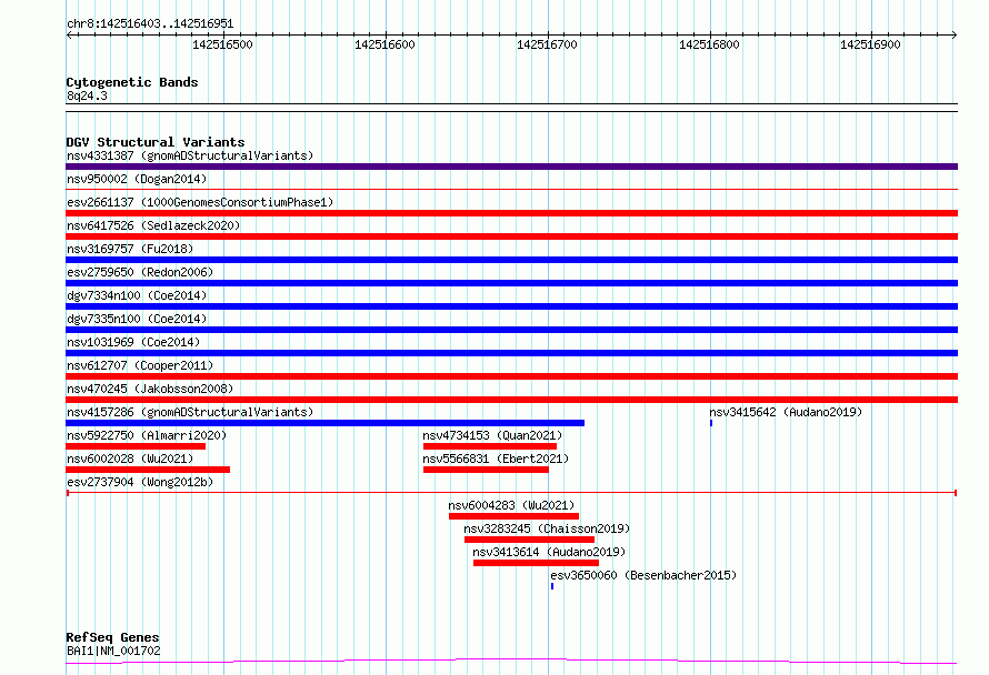 Variant DetailsVariant: esv2737904| Internal ID | 10321540 | | Landmark | | | Location Information | | | Cytoband | 8q24.3 | | Allele length | | Assembly | Allele length | | hg38 | 549 | | hg19 | 549 |
