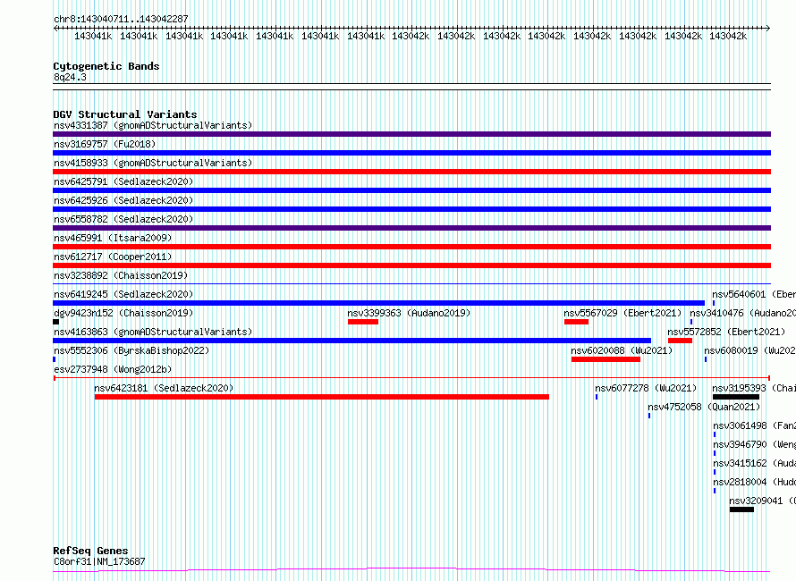 Variant DetailsVariant: esv2737948| Internal ID | 10321584 | | Landmark | | | Location Information | | | Cytoband | 8q24.3 | | Allele length | | Assembly | Allele length | | hg38 | 1577 | | hg19 | 1577 |