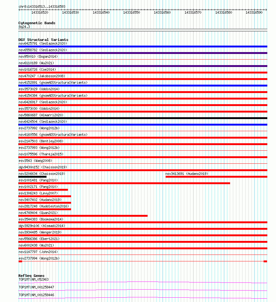 Variant DetailsVariant: esv2737994| Internal ID | 10321630 | | Landmark | | | Location Information | | | Cytoband | 8q24.3 | | Allele length | | Assembly | Allele length | | hg38 | 81 | | hg19 | 81 |