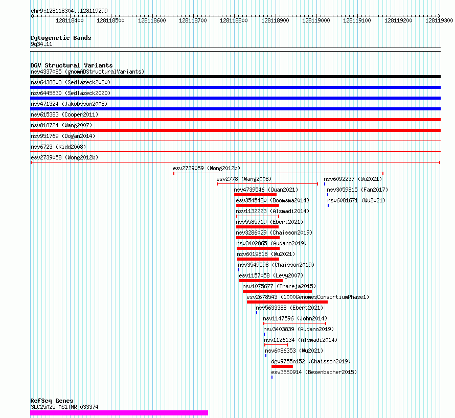 Variant DetailsVariant: esv2739058 | Internal ID | 10322694 | | Landmark | | | Location Information | | | Cytoband | 9q34.11 | | Allele length | | Assembly | Allele length | | hg38 | 996 | | hg19 | 996 |