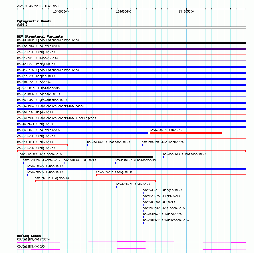 Variant DetailsVariant: esv2739234| Internal ID | 10322870 | | Landmark | | | Location Information | | | Cytoband | 9q34.3 | | Allele length | | Assembly | Allele length | | hg38 | 364 | | hg19 | 364 |