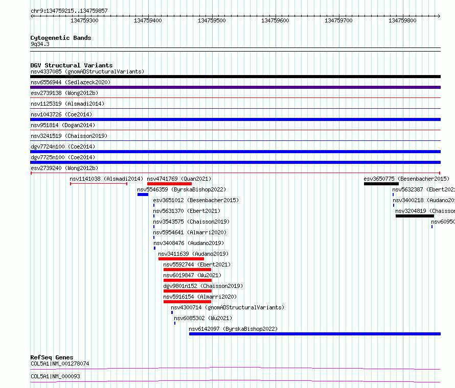 Variant DetailsVariant: esv2739240| Internal ID | 10322876 | | Landmark | | | Location Information | | | Cytoband | 9q34.3 | | Allele length | | Assembly | Allele length | | hg38 | 643 | | hg19 | 643 |