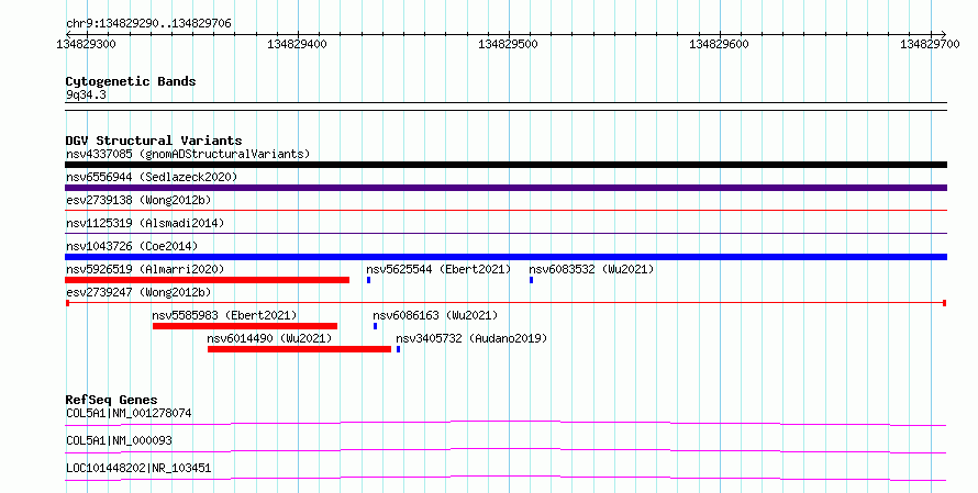 Variant DetailsVariant: esv2739247| Internal ID | 10322883 | | Landmark | | | Location Information | | | Cytoband | 9q34.3 | | Allele length | | Assembly | Allele length | | hg38 | 417 | | hg19 | 417 |