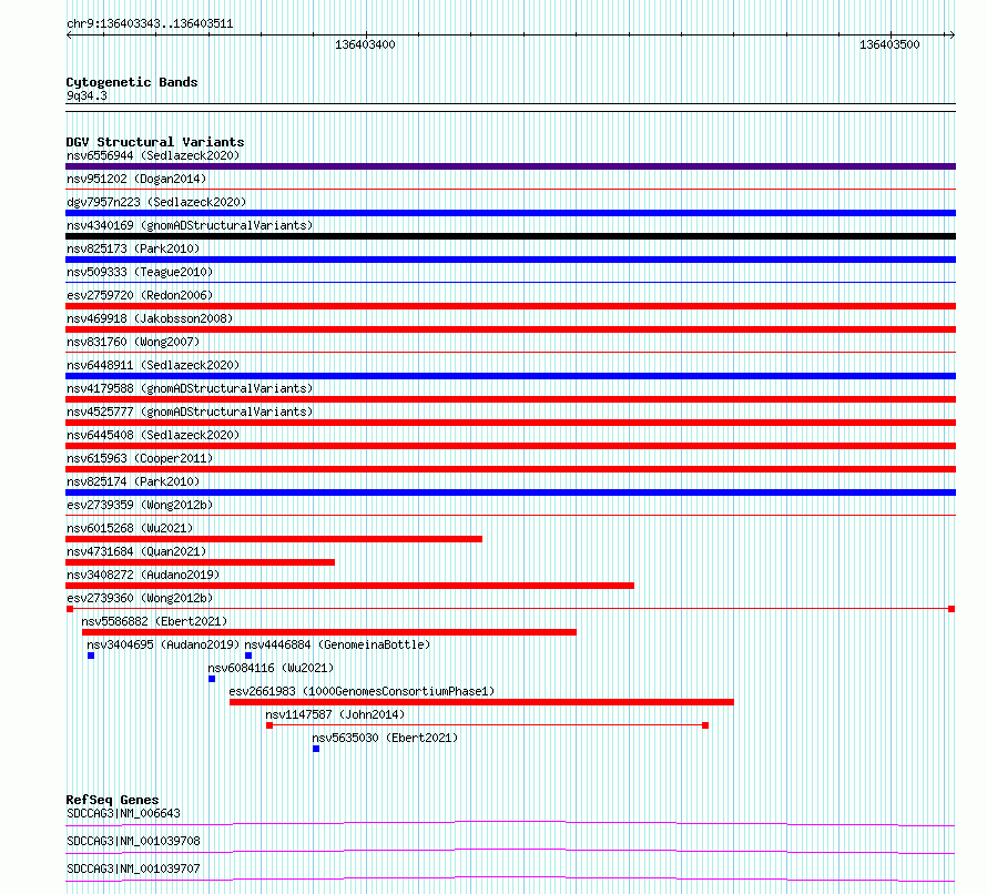 Variant DetailsVariant: esv2739360| Internal ID | 10322996 | | Landmark | | | Location Information | | | Cytoband | 9q34.3 | | Allele length | | Assembly | Allele length | | hg38 | 169 | | hg19 | 169 |
