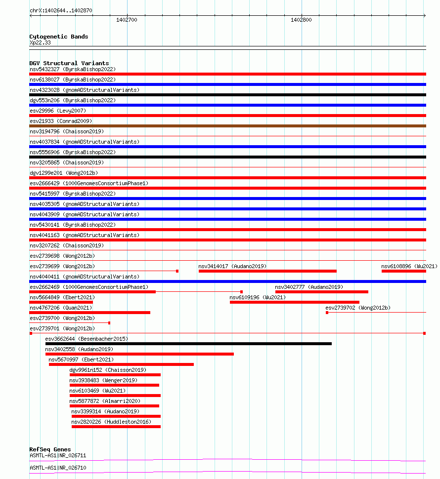 Variant DetailsVariant: esv2739701| Internal ID | 10323337 | | Landmark | | | Location Information | | | Cytoband | Xp22.33 | | Allele length | | Assembly | Allele length | | hg38 | 227 | | hg19 | 227 |