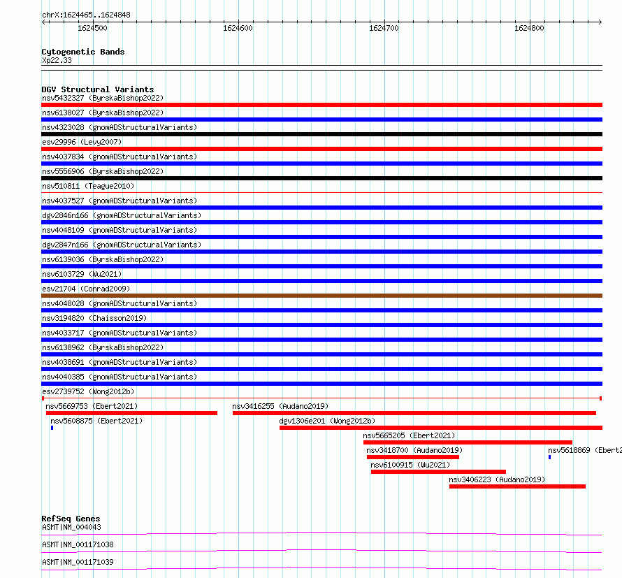 Variant DetailsVariant: esv2739752| Internal ID | 10323388 | | Landmark | | | Location Information | | | Cytoband | Xp22.33 | | Allele length | | Assembly | Allele length | | hg38 | 384 | | hg19 | 384 |