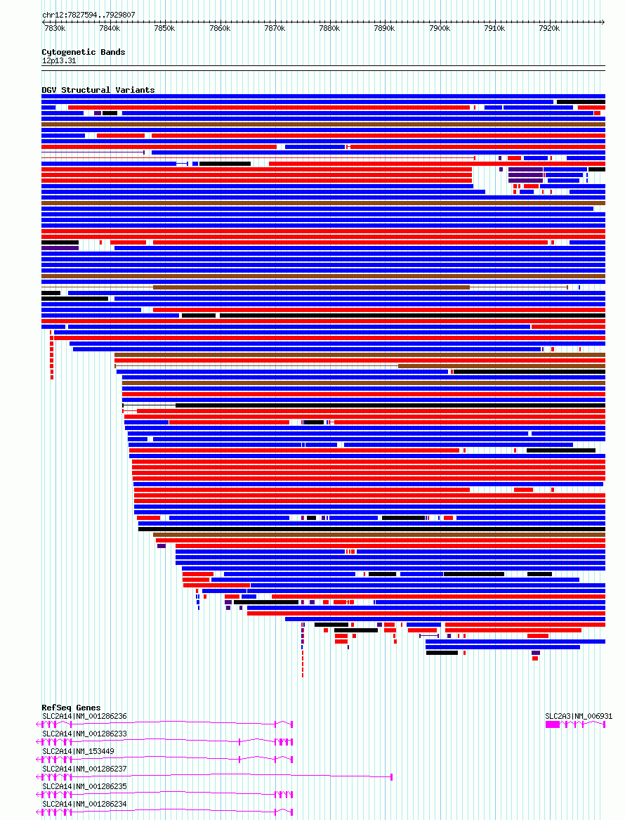 Variant DetailsVariant: esv2742389| Internal ID | 10296505 | | Landmark | | | Location Information | | | Cytoband | 12p13.31 | | Allele length | | Assembly | Allele length | | hg38 | 102214 | | hg19 | 102214 |