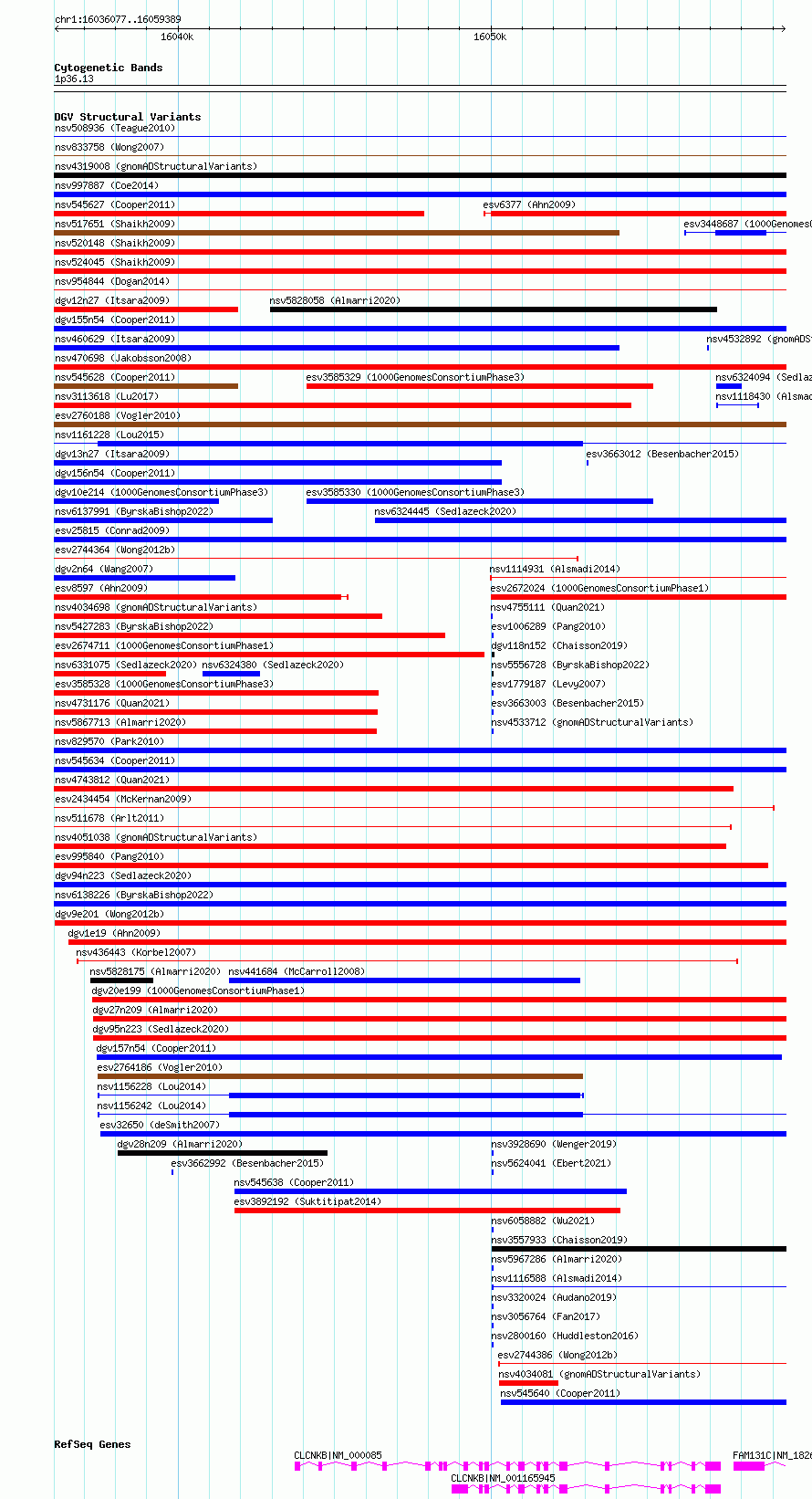 Variant DetailsVariant: esv2742704| Internal ID | 10296820 | | Landmark | | | Location Information | | | Cytoband | 1p36.13 | | Allele length | | Assembly | Allele length | | hg38 | 23313 | | hg19 | 23313 |