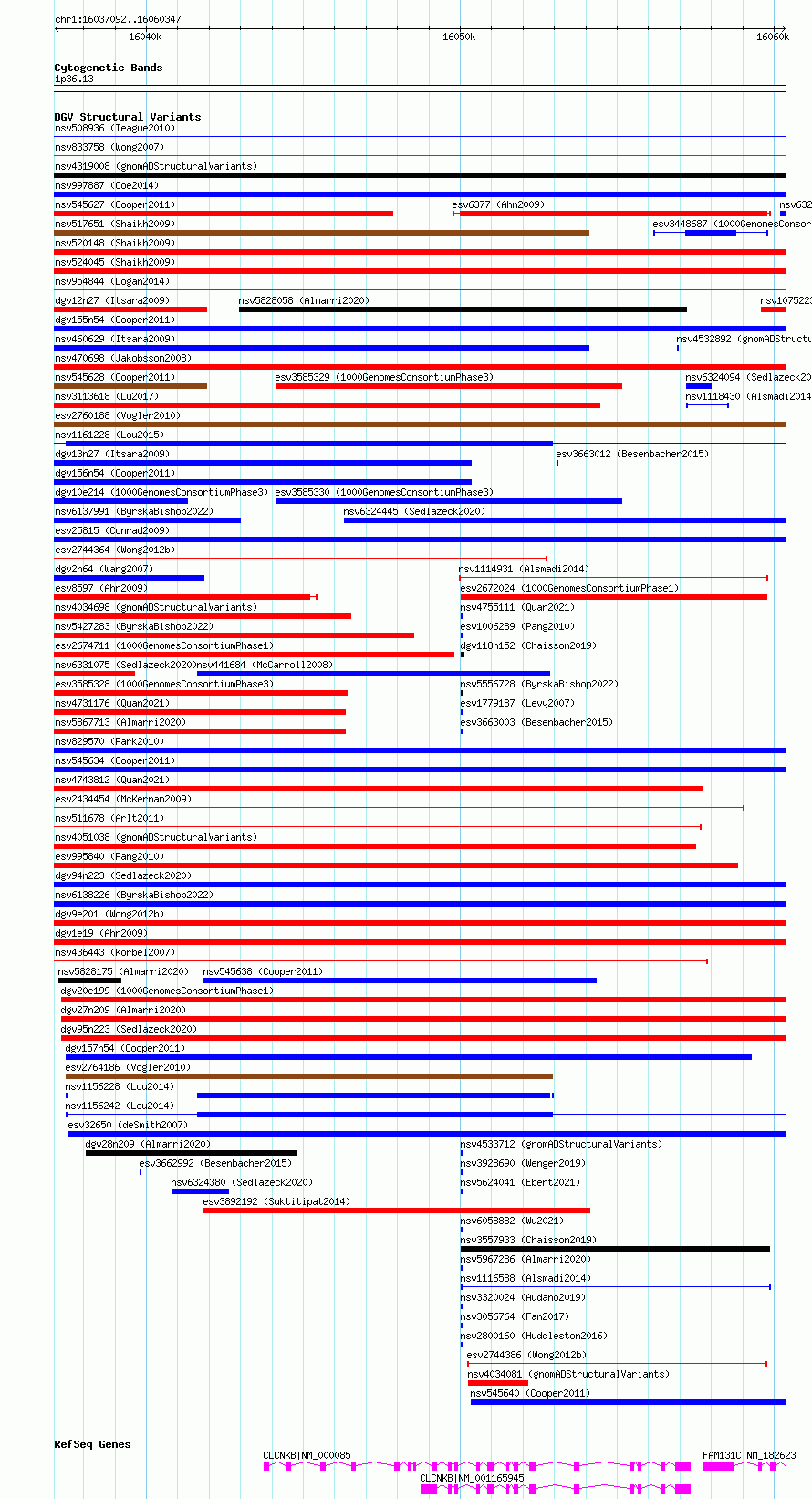 Variant DetailsVariant: esv2742987| Internal ID | 10297103 | | Landmark | | | Location Information | | | Cytoband | 1p36.13 | | Allele length | | Assembly | Allele length | | hg38 | 23256 | | hg19 | 23256 |