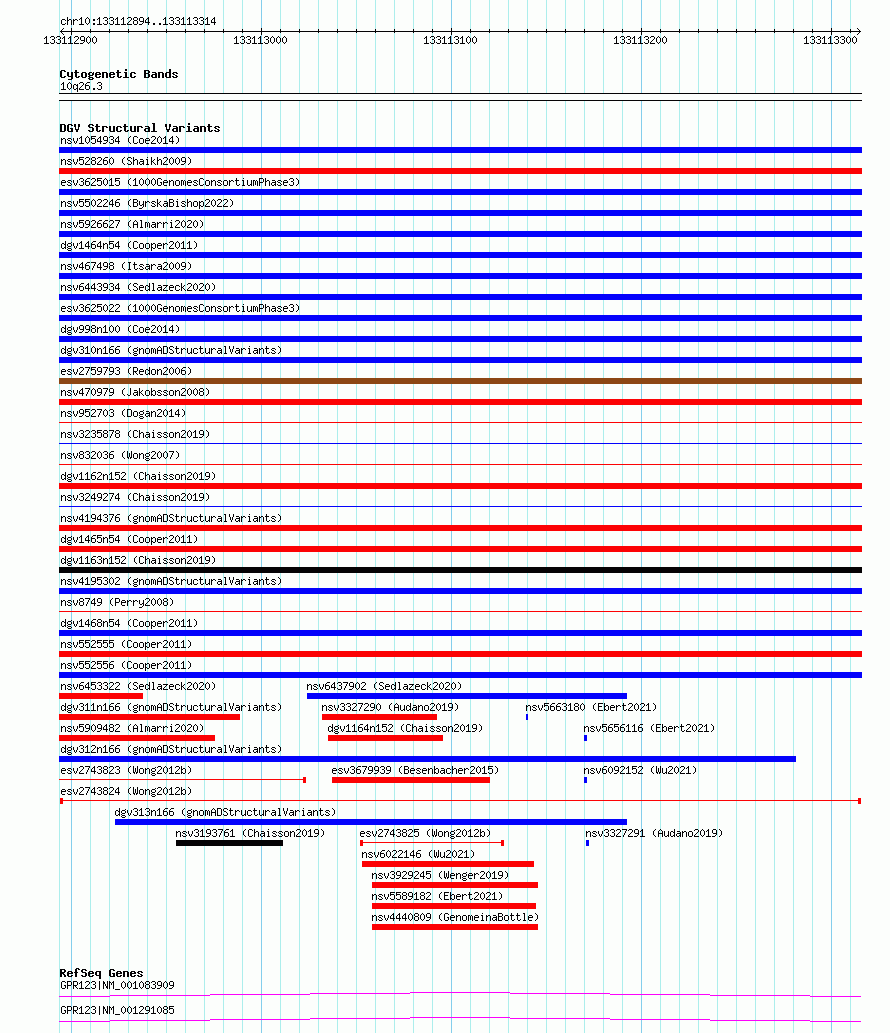 Variant DetailsVariant: esv2743824| Internal ID | 10324794 | | Landmark | | | Location Information | | | Cytoband | 10q26.3 | | Allele length | | Assembly | Allele length | | hg38 | 421 | | hg19 | 421 |