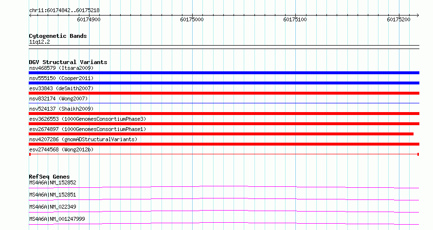 Variant DetailsVariant: esv2744568| Internal ID | 9978852 | | Landmark | | | Location Information | | | Cytoband | 11q12.2 | | Allele length | | Assembly | Allele length | | hg38 | 377 | | hg19 | 377 |
