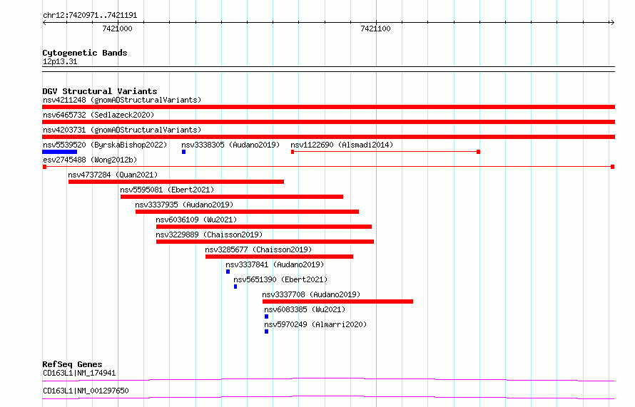 Variant DetailsVariant: esv2745488| Internal ID | 10326458 | | Landmark | | | Location Information | | | Cytoband | 12p13.31 | | Allele length | | Assembly | Allele length | | hg38 | 221 | | hg19 | 221 |