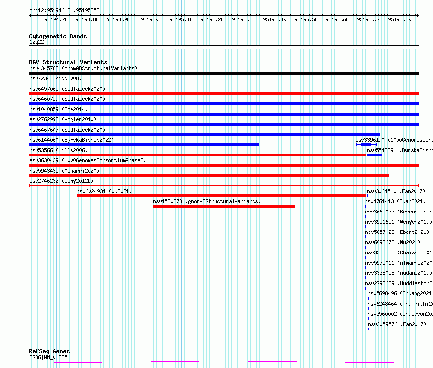 Variant DetailsVariant: esv2746232| Internal ID | 10327202 | | Landmark | | | Location Information | | | Cytoband | 12q22 | | Allele length | | Assembly | Allele length | | hg38 | 1246 | | hg19 | 1246 |