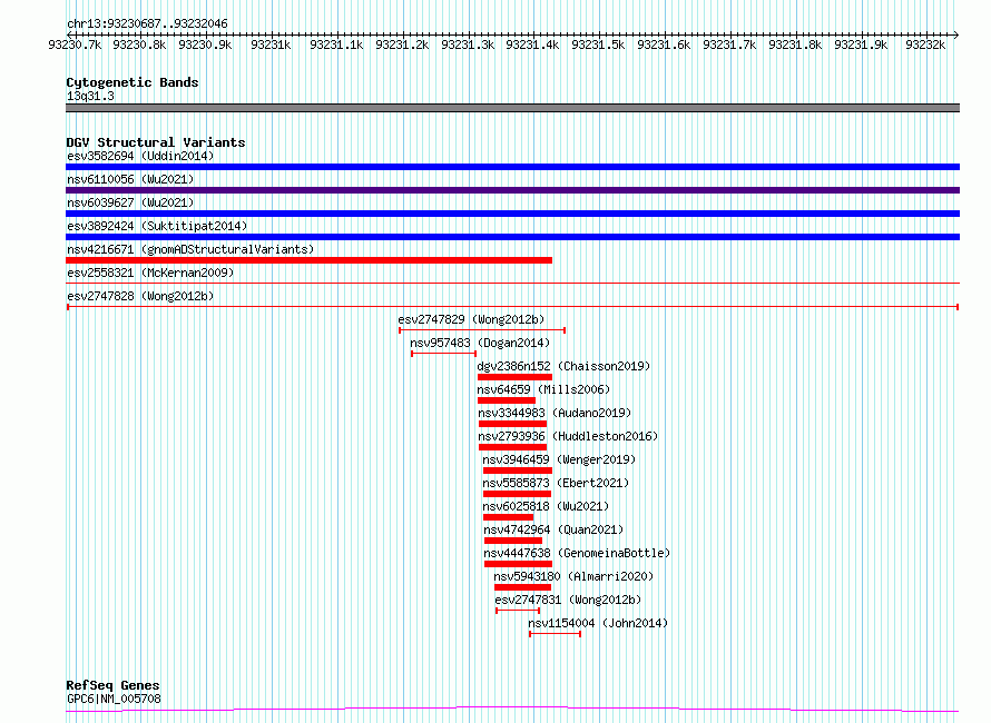 Variant DetailsVariant: esv2747828 | Internal ID | 10328798 | | Landmark | | | Location Information | | | Cytoband | 13q31.3 | | Allele length | | Assembly | Allele length | | hg38 | 1360 | | hg19 | 1360 |