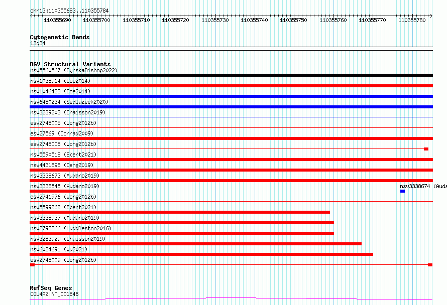 Variant DetailsVariant: esv2748009| Internal ID | 10328979 | | Landmark | | | Location Information | | | Cytoband | 13q34 | | Allele length | | Assembly | Allele length | | hg38 | 102 | | hg19 | 102 |