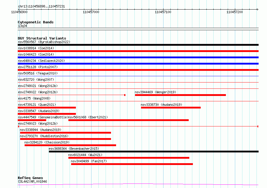 Variant DetailsVariant: esv2748023| Internal ID | 10328993 | | Landmark | | | Location Information | | | Cytoband | 13q34 | | Allele length | | Assembly | Allele length | | hg38 | 334 | | hg19 | 334 |