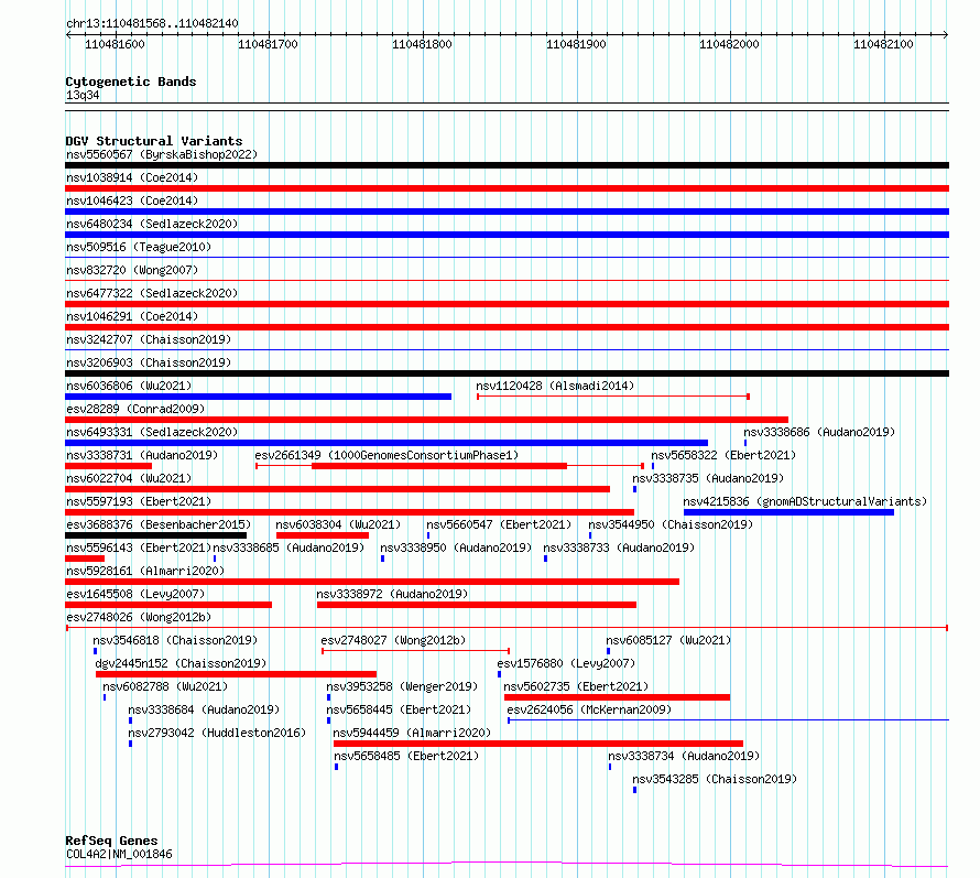 Variant DetailsVariant: esv2748026| Internal ID | 10328996 | | Landmark | | | Location Information | | | Cytoband | 13q34 | | Allele length | | Assembly | Allele length | | hg38 | 573 | | hg19 | 573 |