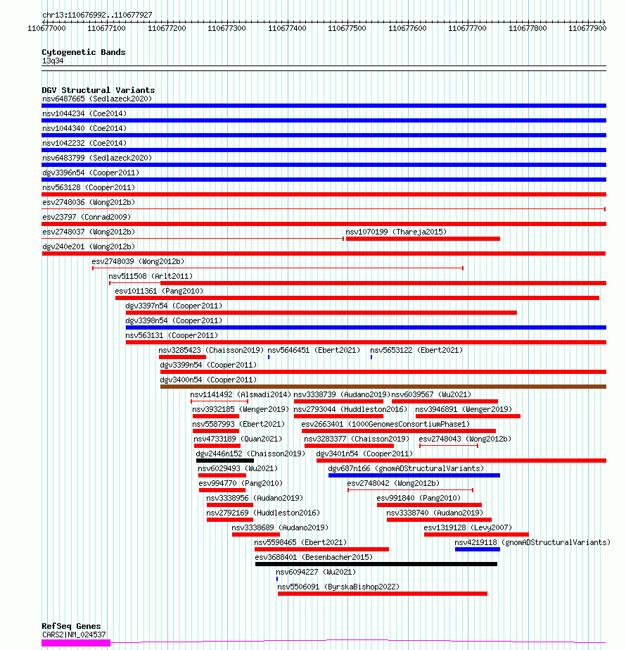 Variant DetailsVariant: esv2748038 | Internal ID | 10329008 | | Landmark | | | Location Information | | | Cytoband | 13q34 | | Allele length | | Assembly | Allele length | | hg38 | 936 | | hg19 | 936 |