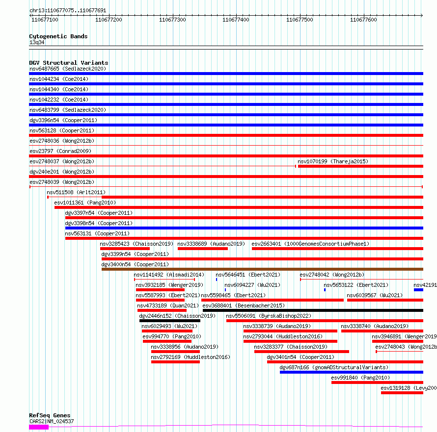 Variant DetailsVariant: esv2748039 | Internal ID | 10329009 | | Landmark | | | Location Information | | | Cytoband | 13q34 | | Allele length | | Assembly | Allele length | | hg38 | 617 | | hg19 | 617 |