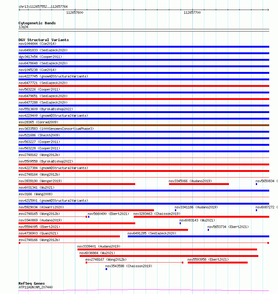 Variant DetailsVariant: esv2748166| Internal ID | 10329136 | | Landmark | | | Location Information | | | Cytoband | 13q34 | | Allele length | | Assembly | Allele length | | hg38 | 213 | | hg19 | 213 |
