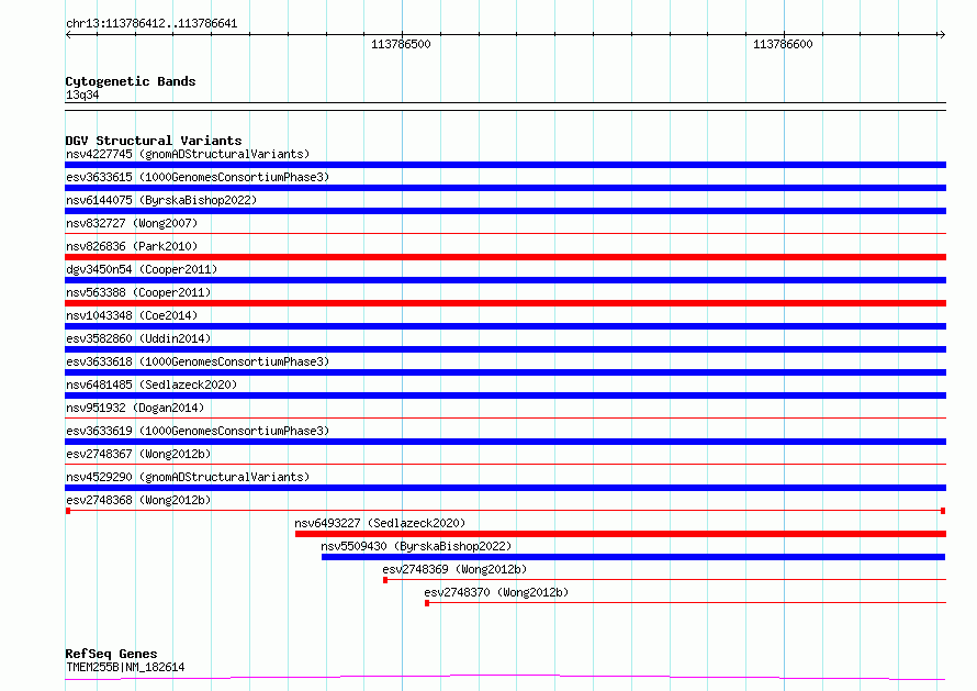 Variant DetailsVariant: esv2748368| Internal ID | 10329338 | | Landmark | | | Location Information | | | Cytoband | 13q34 | | Allele length | | Assembly | Allele length | | hg38 | 230 | | hg19 | 230 |