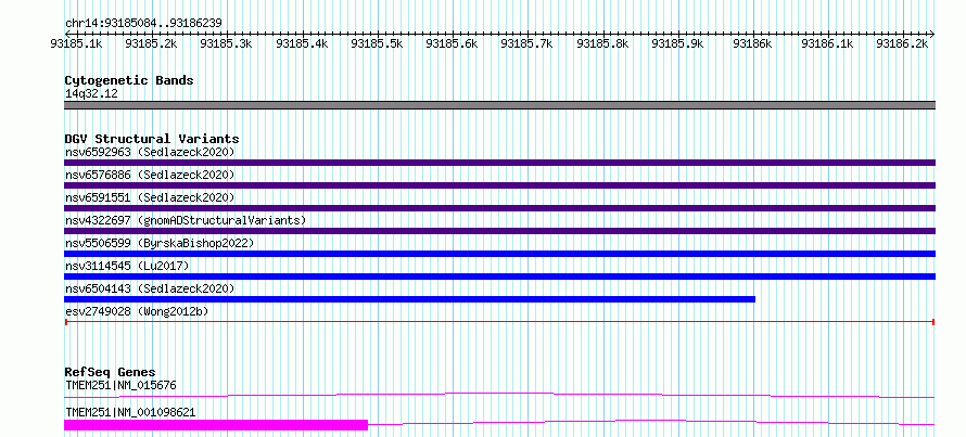 Variant DetailsVariant: esv2749028| Internal ID | 10329998 | | Landmark | | | Location Information | | | Cytoband | 14q32.12 | | Allele length | | Assembly | Allele length | | hg38 | 1156 | | hg19 | 1156 |