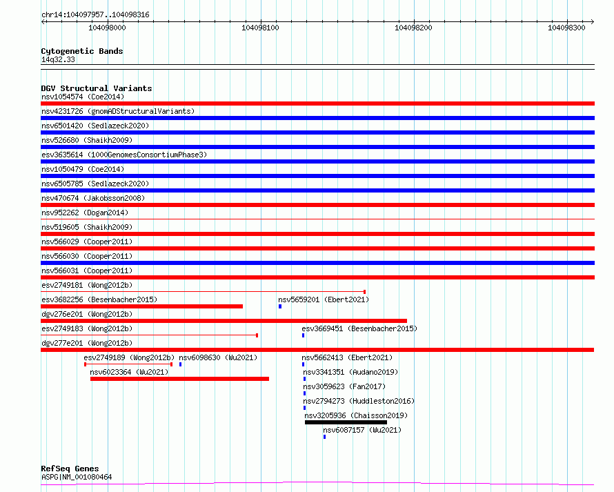 Variant DetailsVariant: esv2749187| Internal ID | 10330157 | | Landmark | | | Location Information | | | Cytoband | 14q32.33 | | Allele length | | Assembly | Allele length | | hg38 | 360 | | hg19 | 360 |