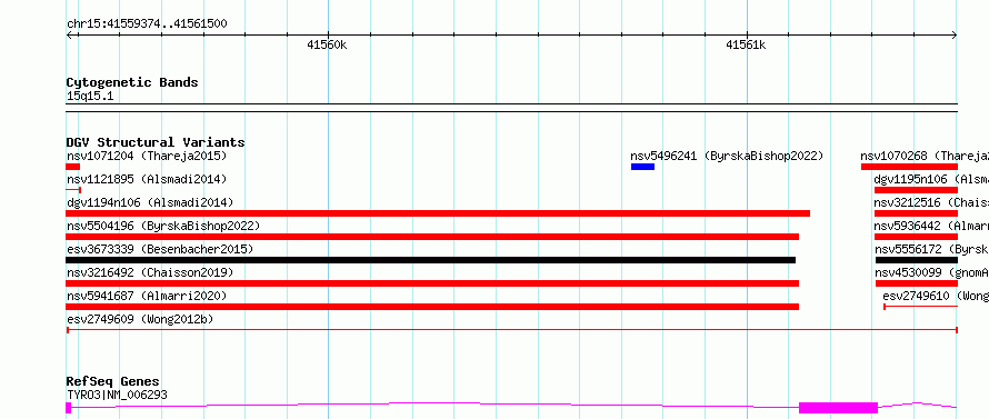 Variant DetailsVariant: esv2749609| Internal ID | 10330579 | | Landmark | | | Location Information | | | Cytoband | 15q15.1 | | Allele length | | Assembly | Allele length | | hg38 | 2127 | | hg19 | 2127 |